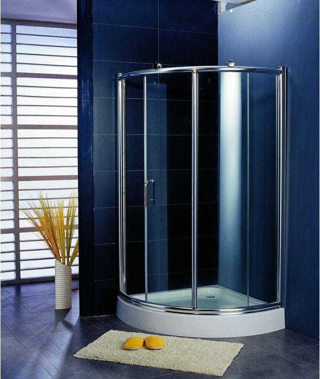 Душевой открытый полукруглый уголок с одной раздвижной дверью и низким нескользким поддоном. Хромированный профиль, удобная ручка, закаленное безопасное стекло. Дверь справа.
