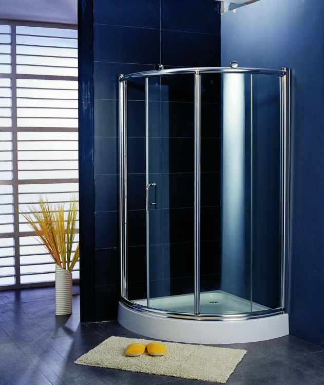 Душевой открытый полукруглый уголок с одной раздвижной дверью (справа) и низким нескользким поддоном. Хромированный профиль, удобная ручка, закаленное безопасное стекло.